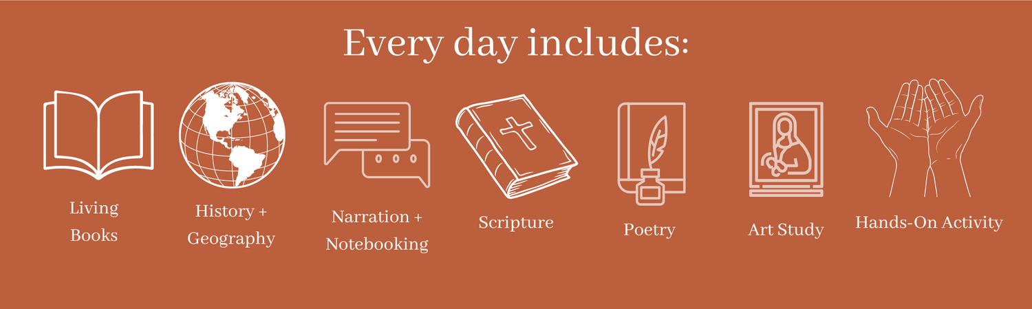 Through living books, your family will learn about the Pilgrim’s voyage to America, the Wampanoag people, the First Encounters, the First Thanksgiving, and the relationship between the Pilgrims and Native Americans in the first year. The curriculum features prompts for notebooking, mapping, and timelining the events leading up to the First Thanksgiving creating a robust history and geography study.