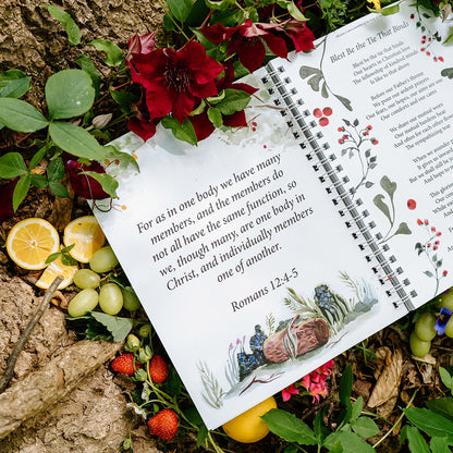 Flourish is an 18-week family Bible curriculum. Each week centers around one declaration statement related to the themes of Mission, Virtue, and Love. Flourish incorporates beauty subjects with Bible study including daily Scripture readings, discussion and prayer prompts, hymns, poetry, and art study. Enjoy the rhythms of connection and beauty found in our beloved Rooted Family Bible Curriculum with a focus on bearing fruit through our lives in the world around us.